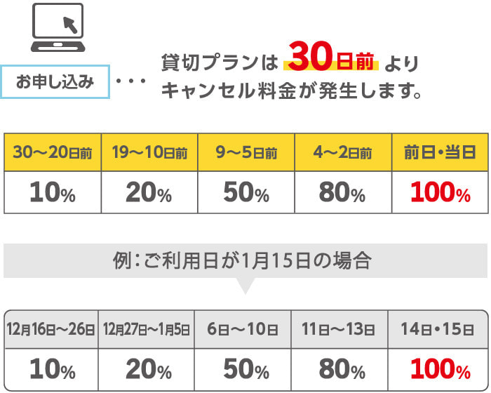 ・ご宿泊前日・当日 宿泊費の100%