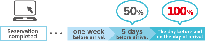 ・5 days before arrival 50% ・The day before and on the day of arrival 100%